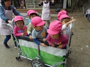うさぎ組さんは園庭で