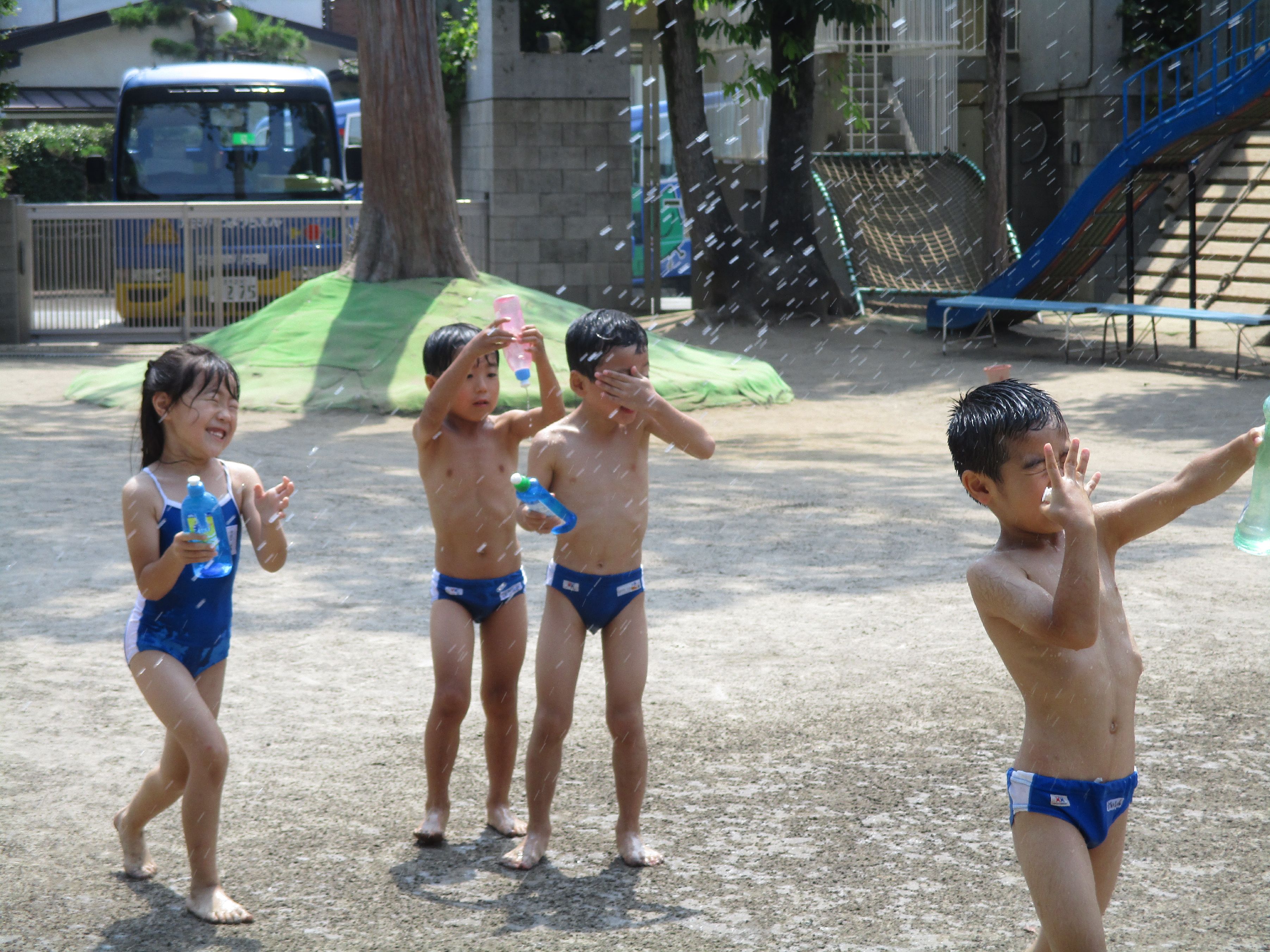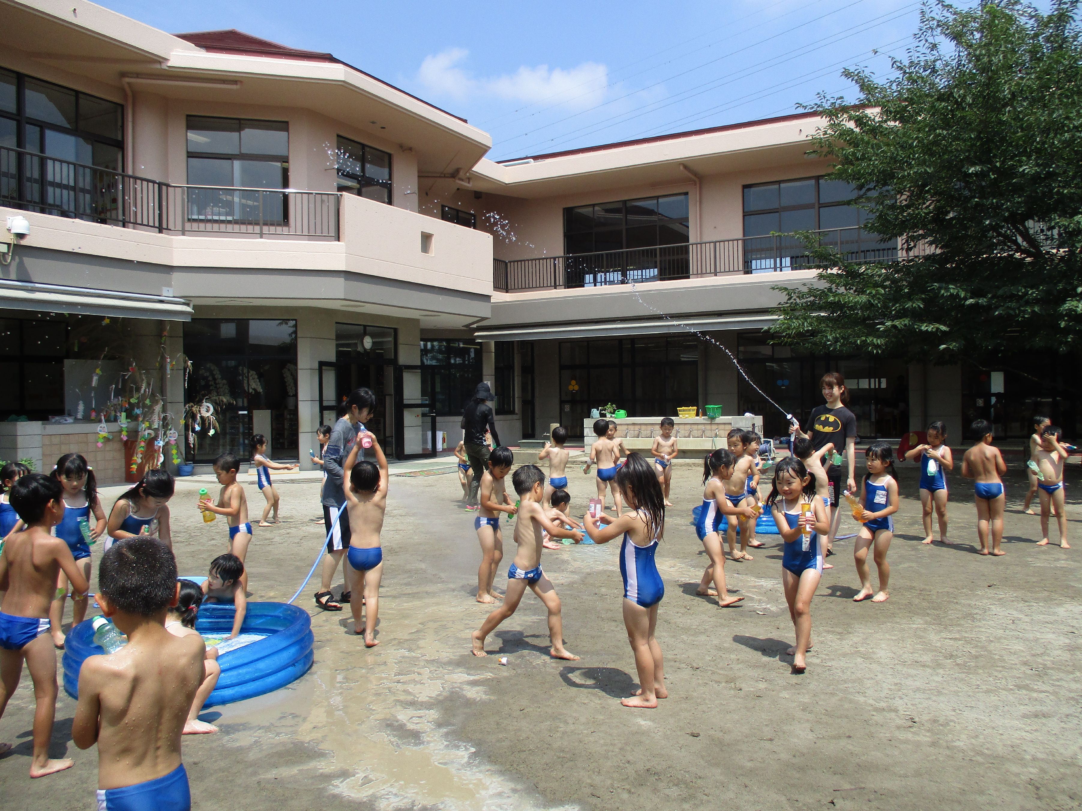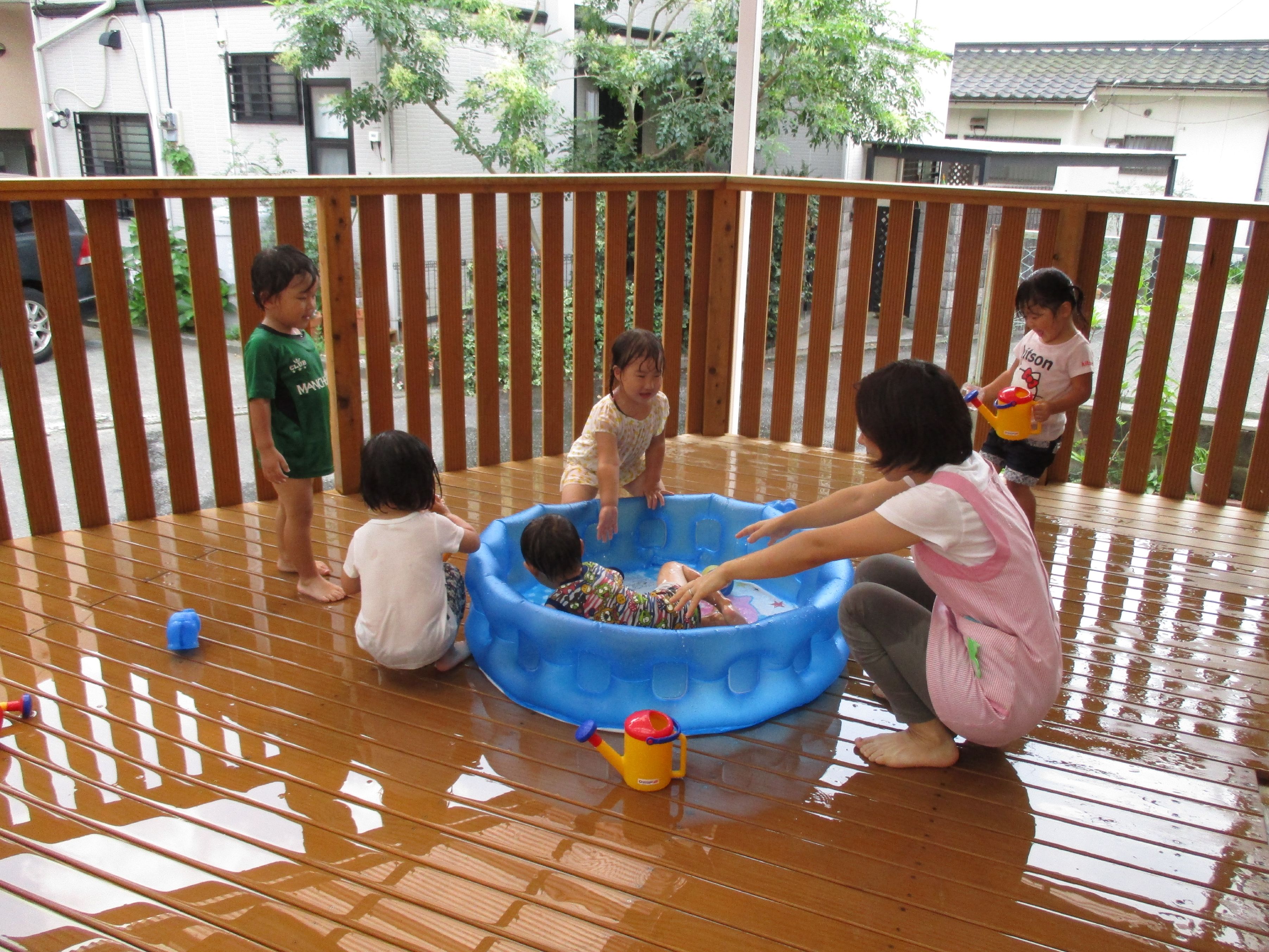今日は松3・4組の水遊び