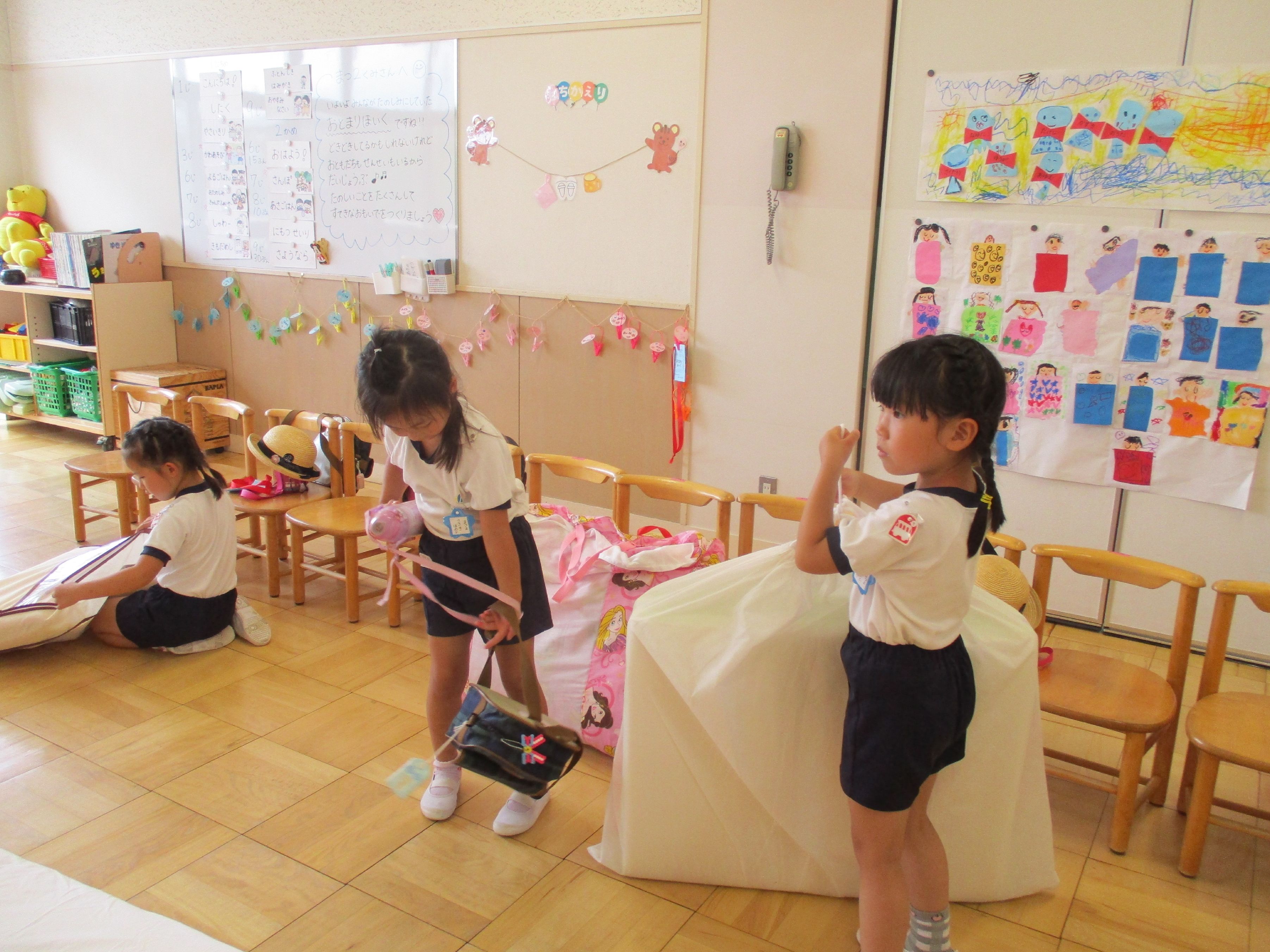 竹4組の部屋は、布団部屋に早変わり