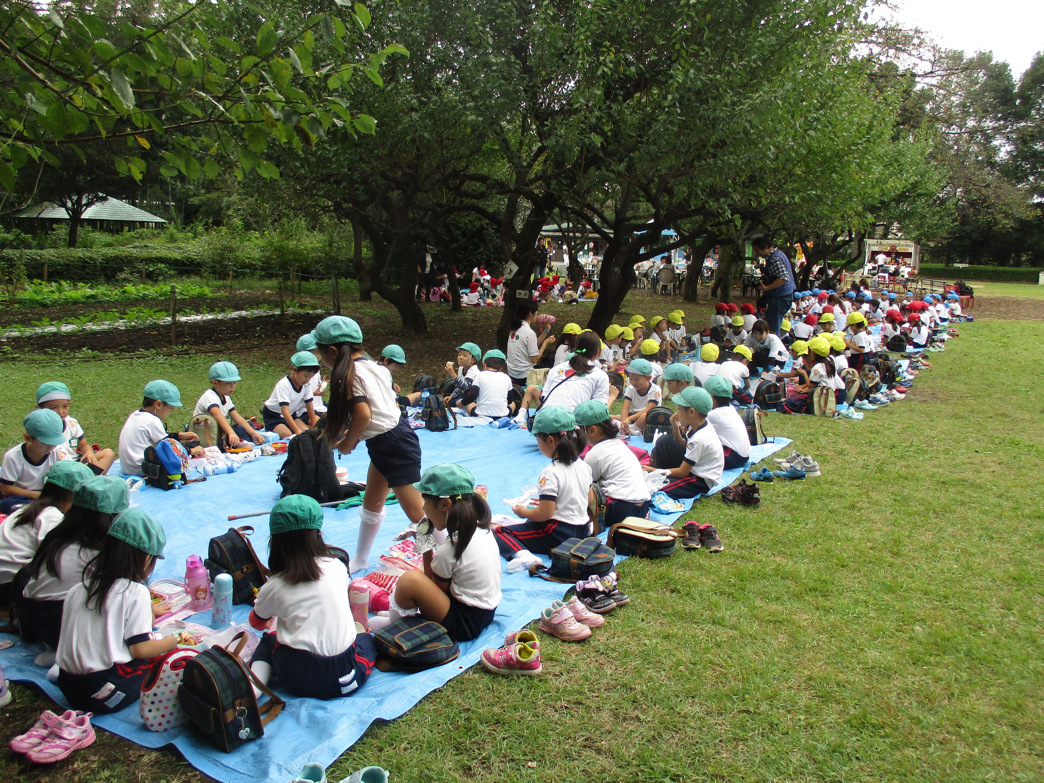 見学した後は芝生広場で昼食タイム