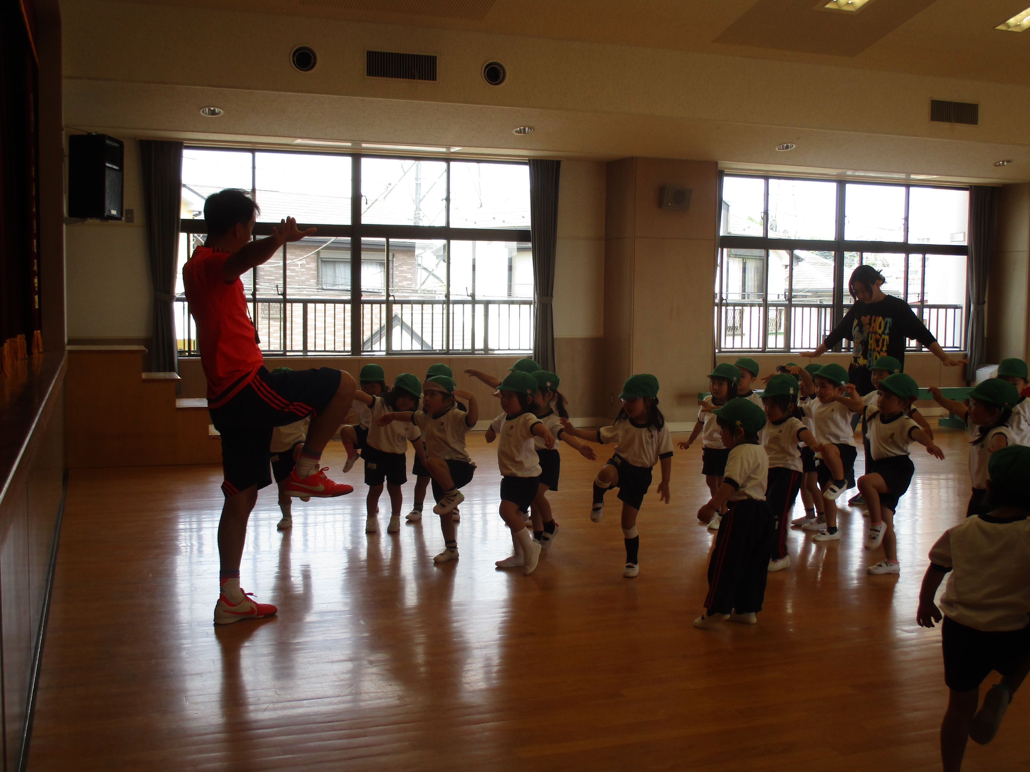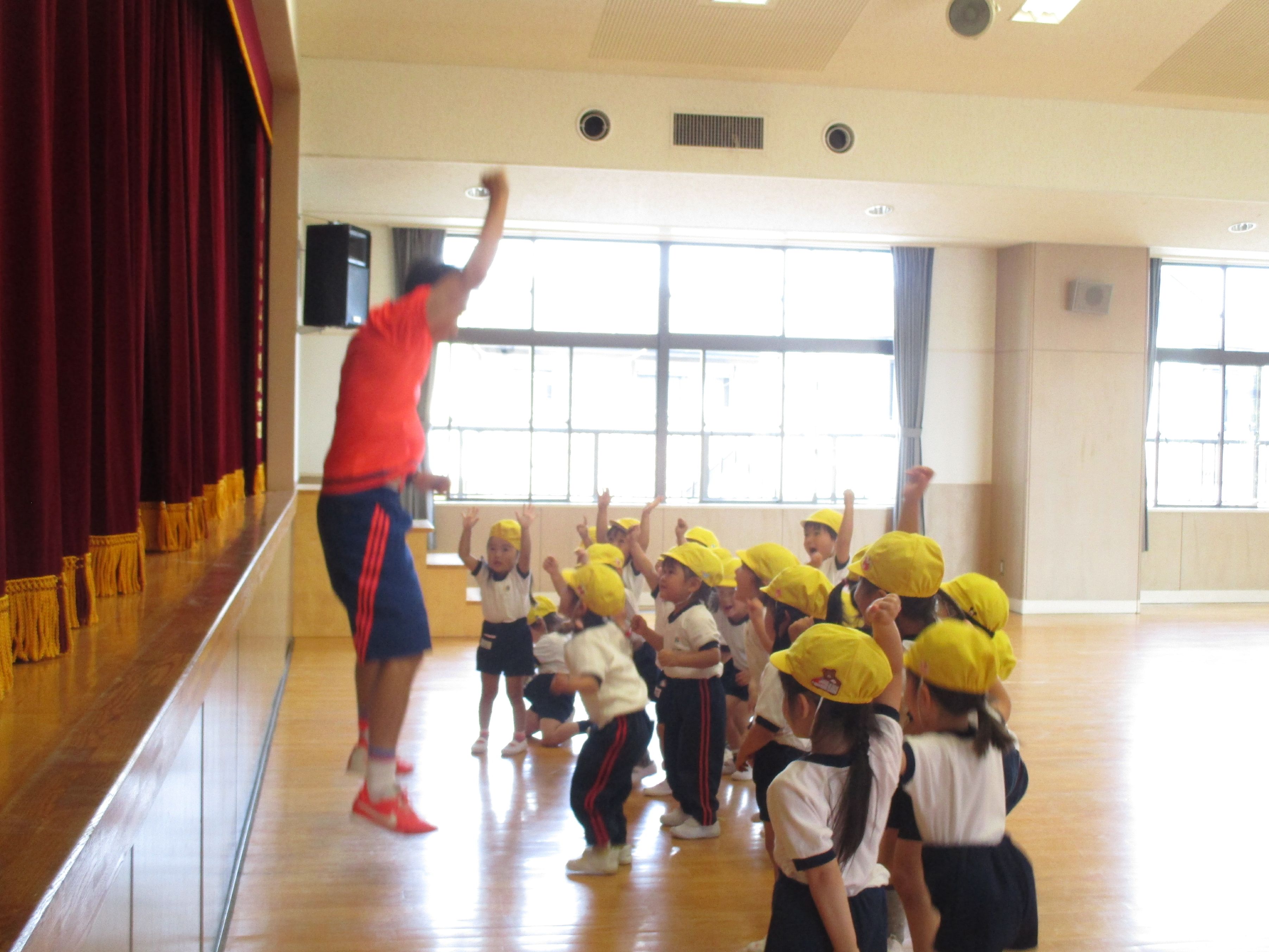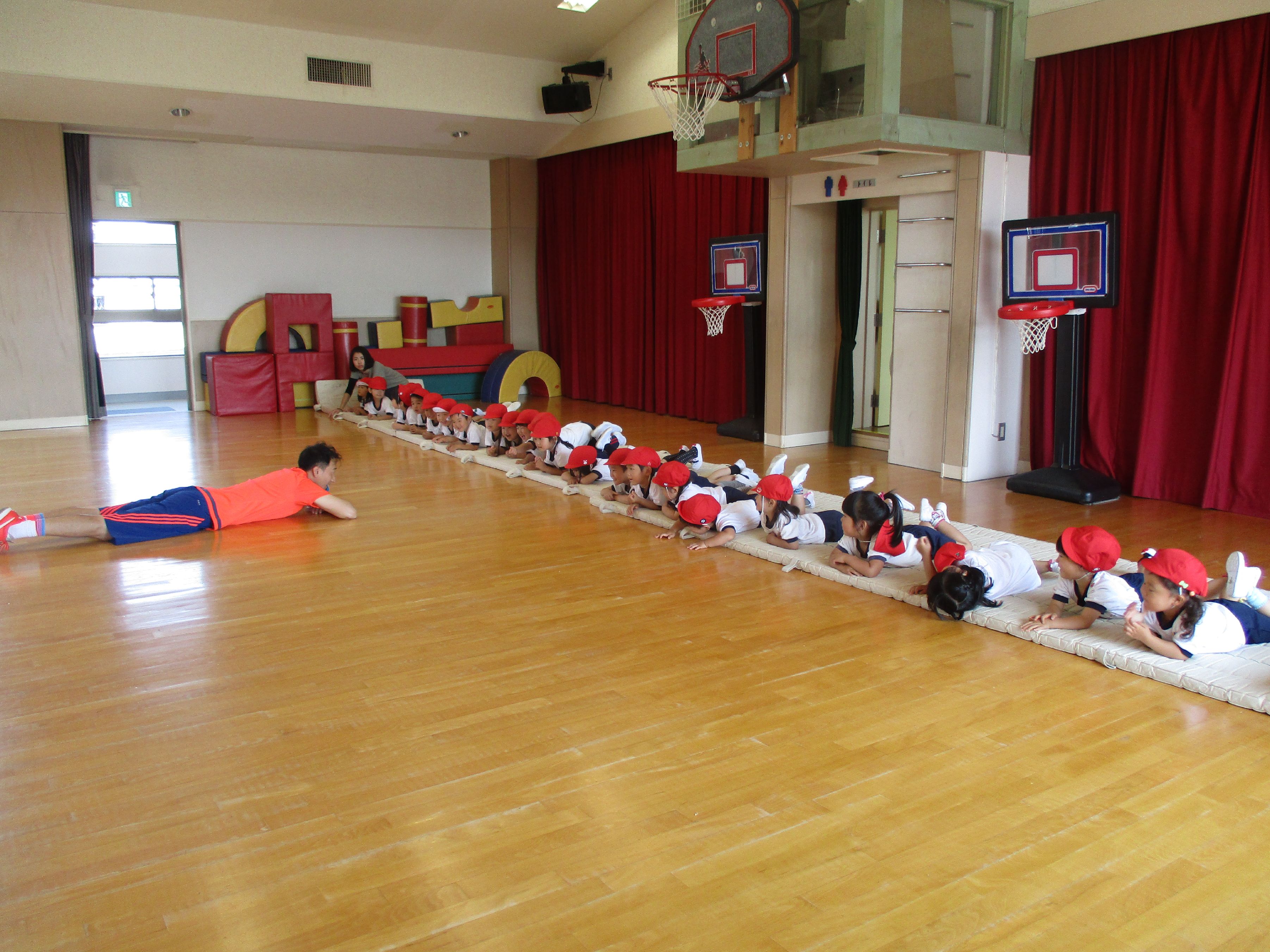 今日ははじめての体操指導