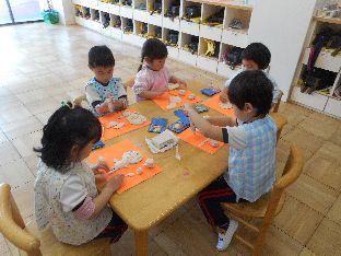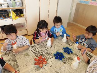包装紙の貼りつけ・色ぬり・小物作りと