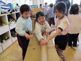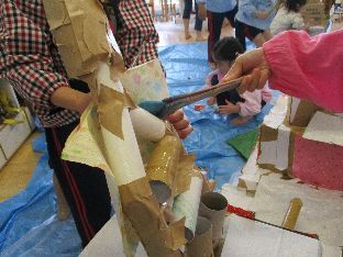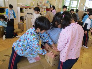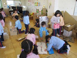 ダンボールや空き箱などの廃材を組み立てていきます☆