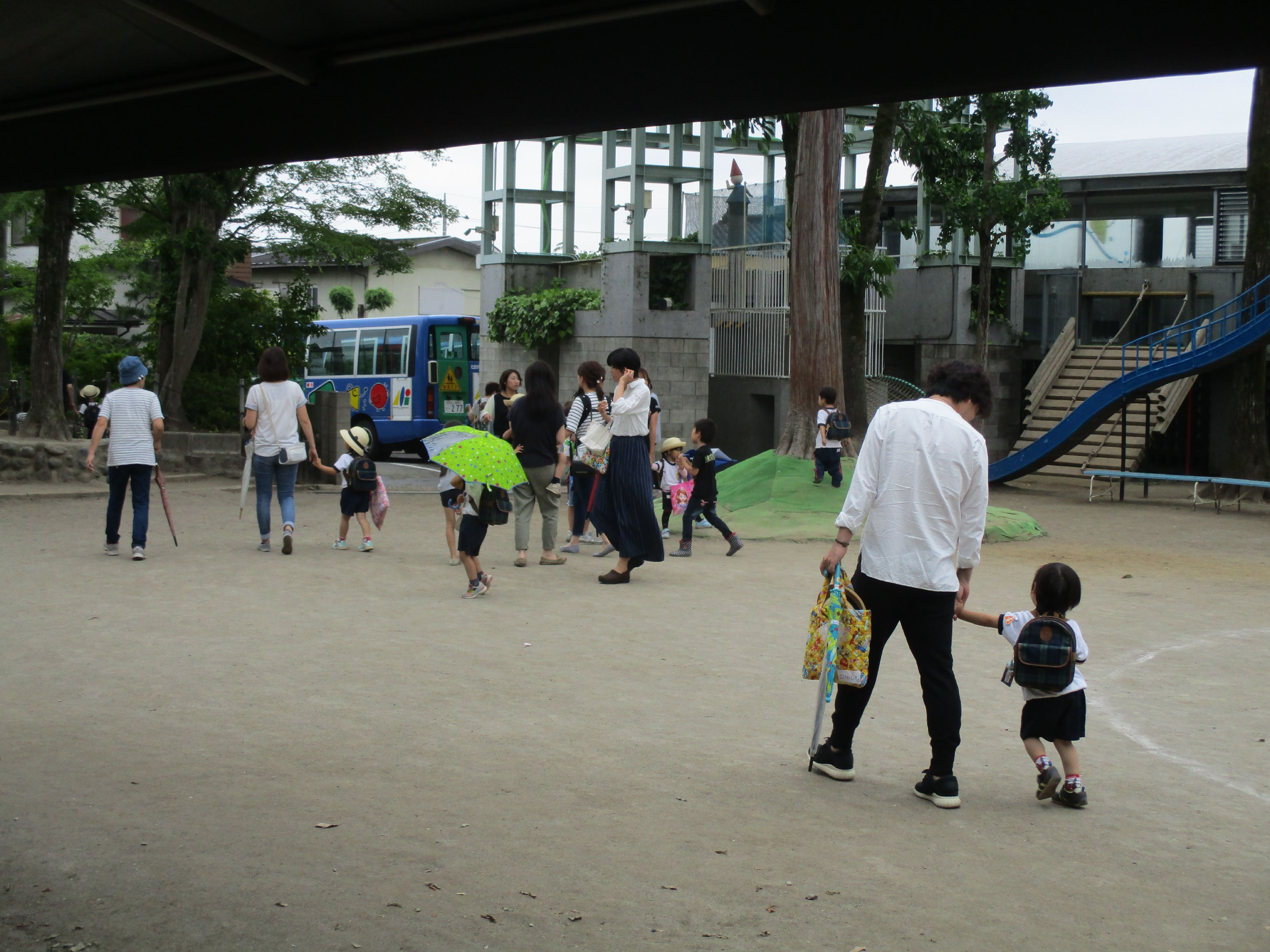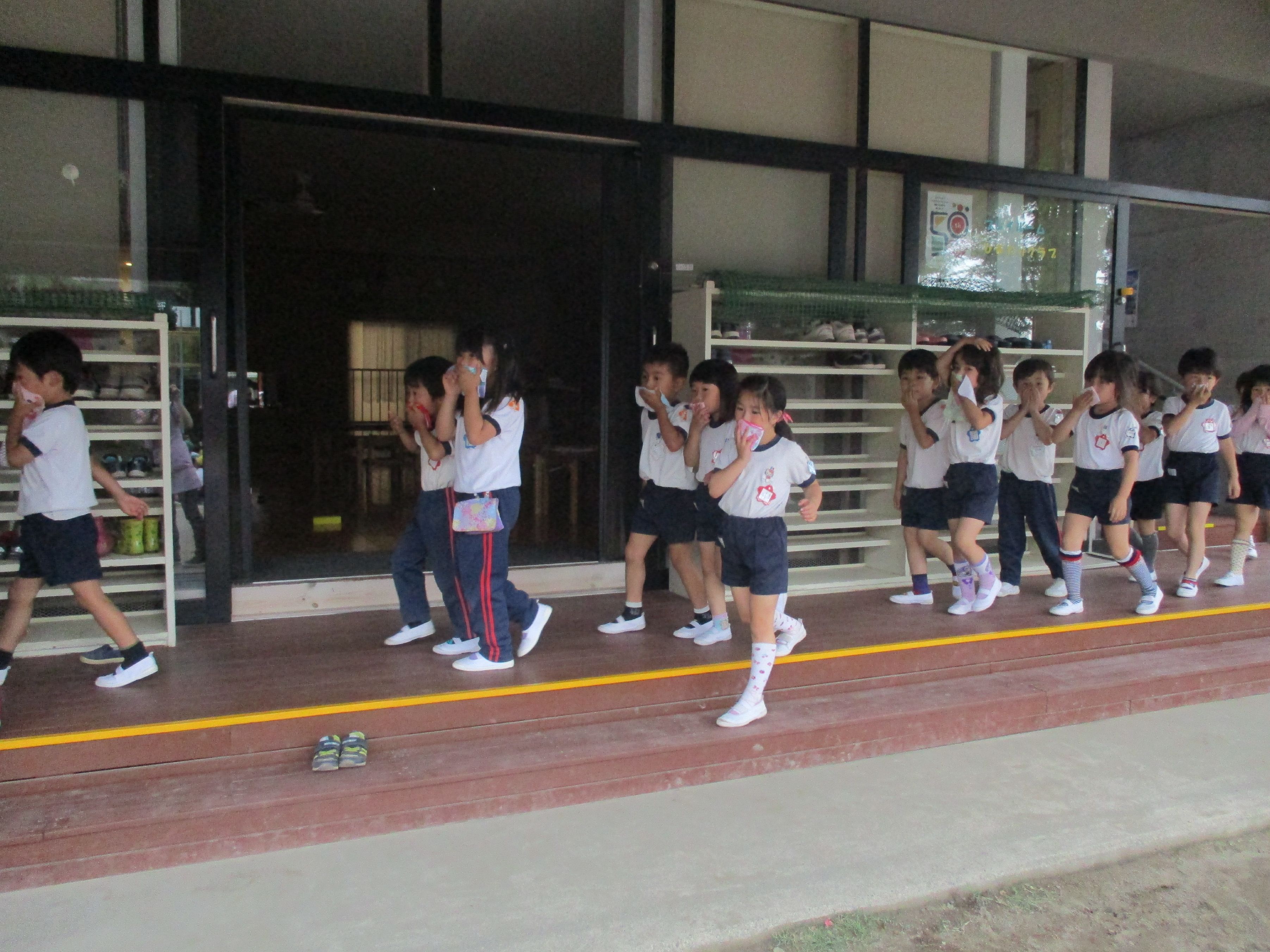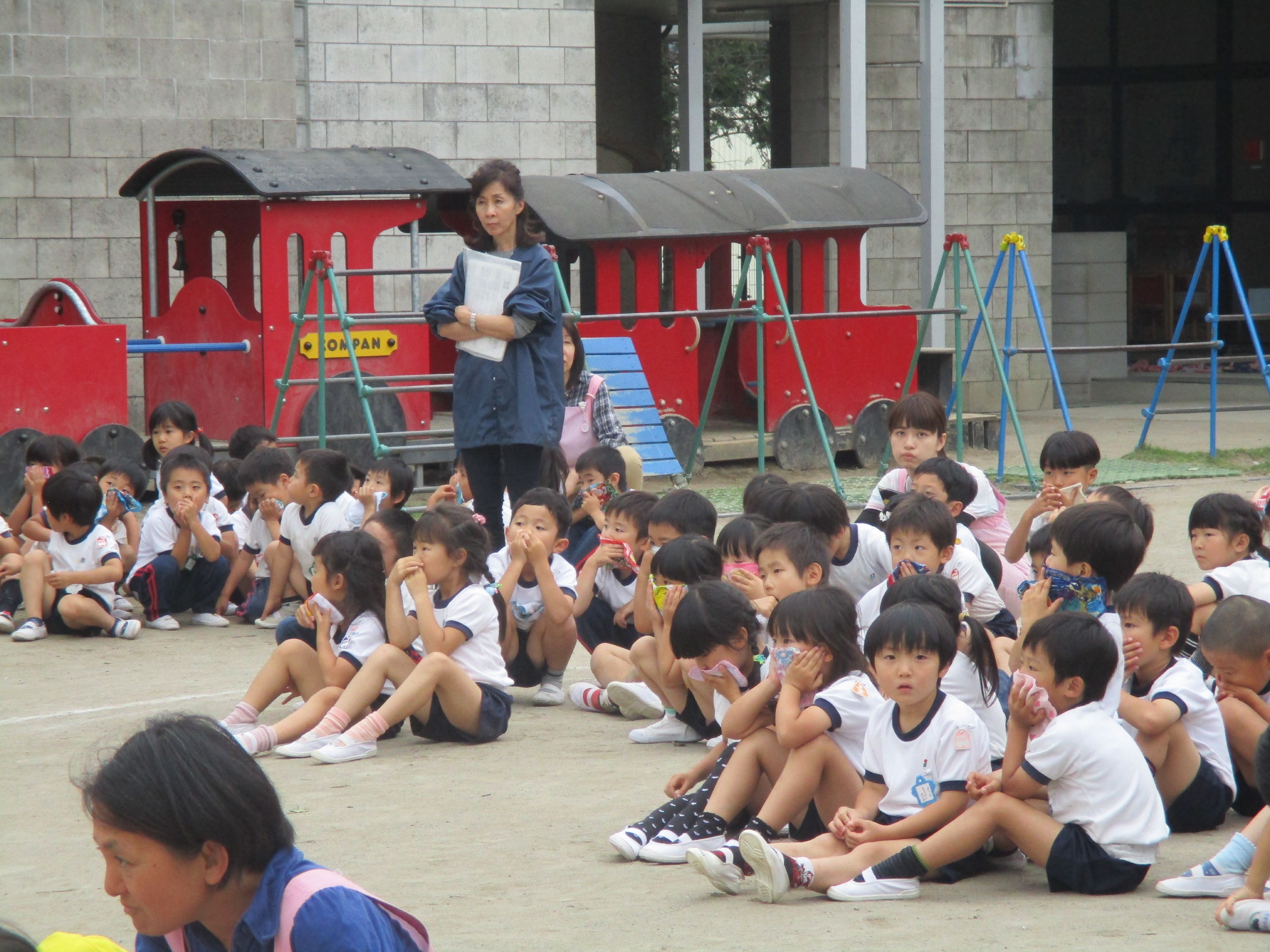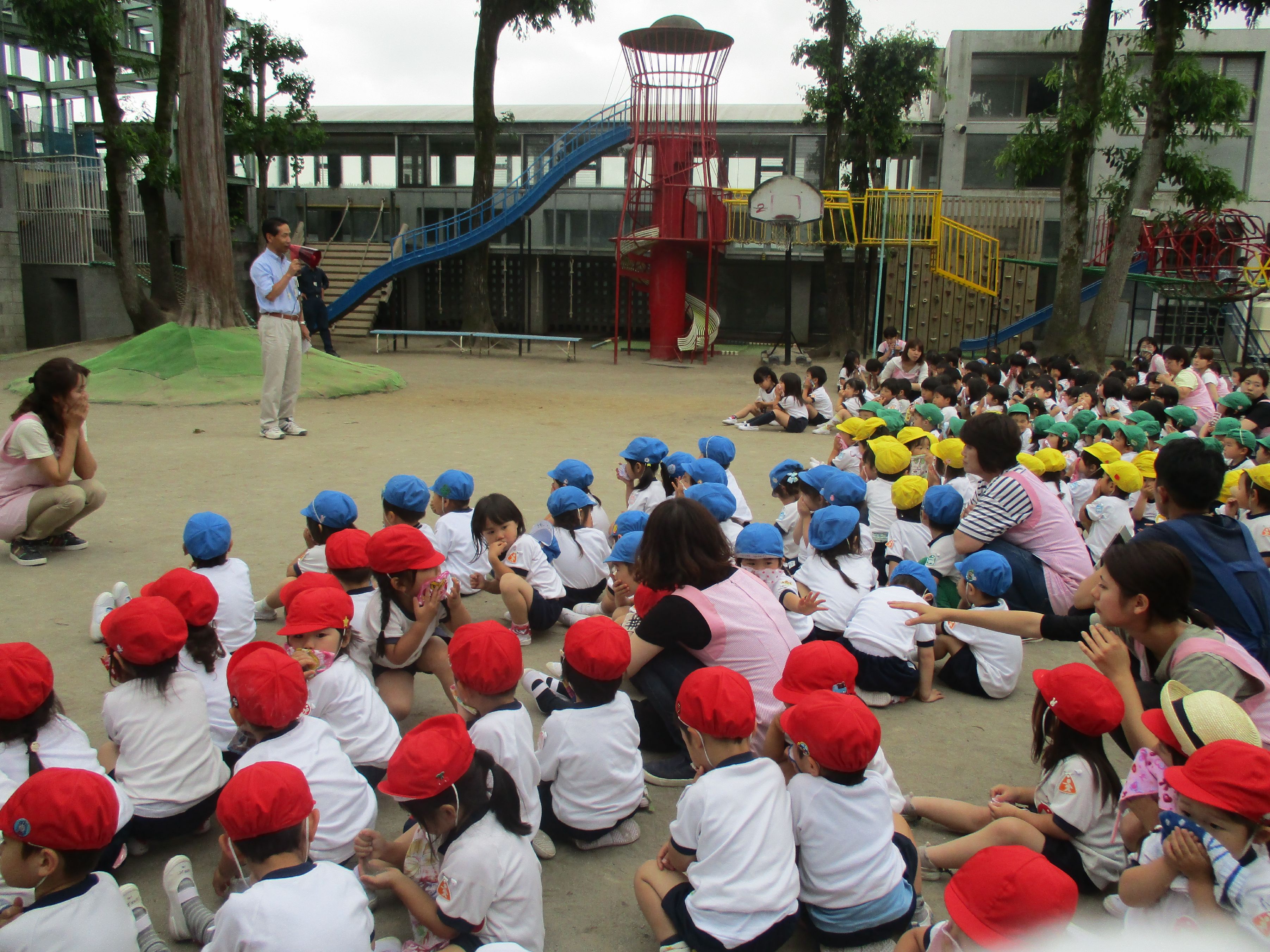 園庭に避難します。