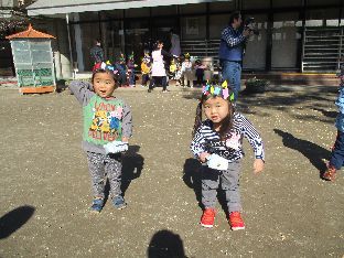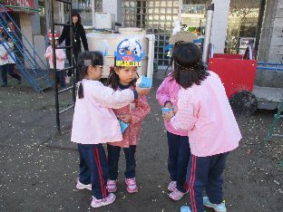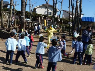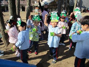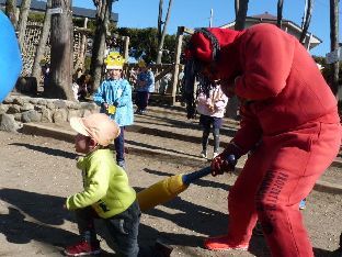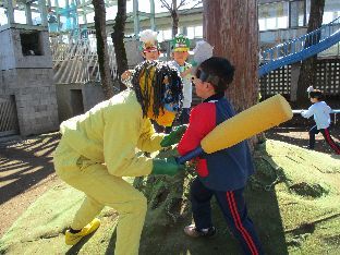 幼稚園の遊具にも豆をまき